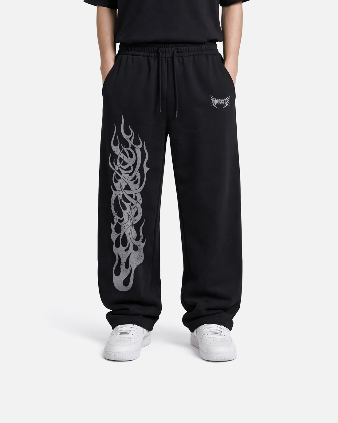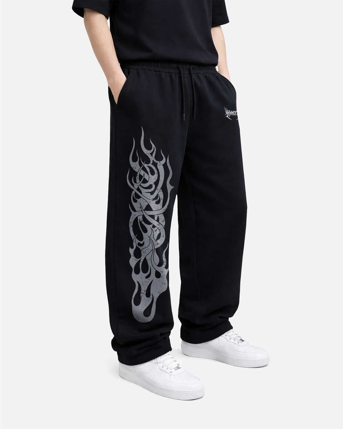 The INFERNO Sweatpants feature a vertical flame graphic running along the leg, delivering a bold and aggressive streetwear style. Crafted from heavyweight French Terry for comfort and durability, these sweatpants combine performance and street aesthetics. The vintage-style screen print adds a worn-in graphic texture that enhances the overall design.